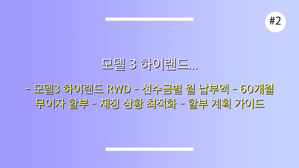 💰 모델 3 하이랜드 RWD: 선수금별 월 납부액 최적화 가이드