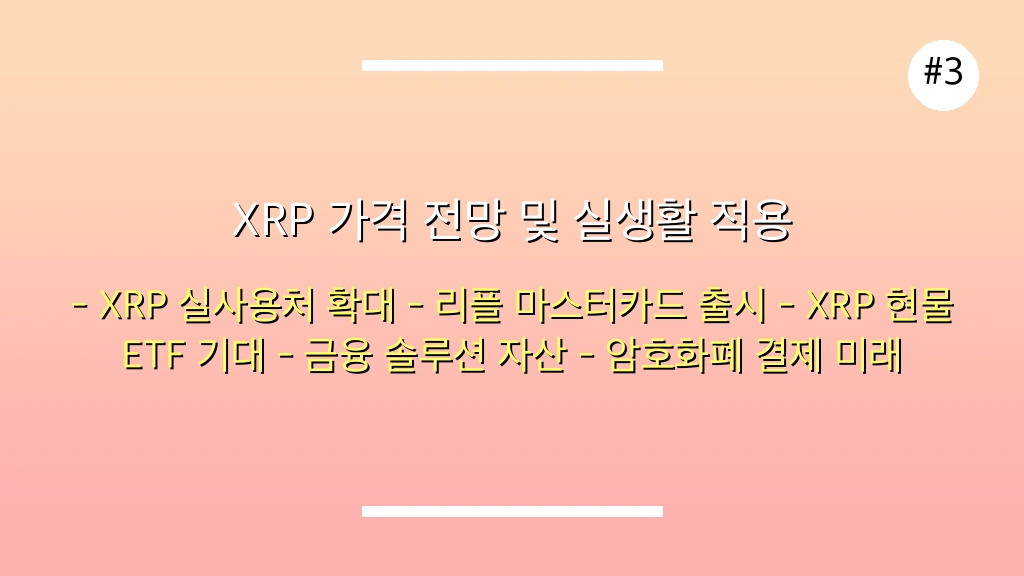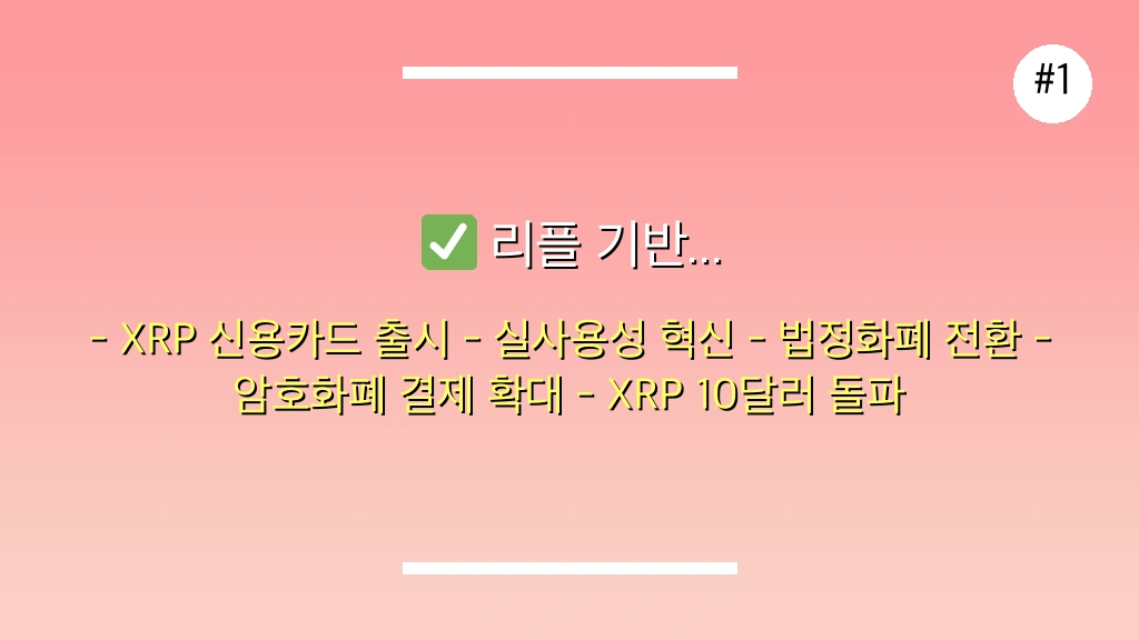 | 리플-마스터카드 신용카드 출시 | 2025년 8월 말 | XRP 실사용성 증대, 결제 시장 확대 |
