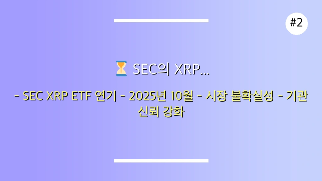 | SEC의 XRP 현물 ETF 승인 연기 | 2025년 10월 | 단기 불확실성, 장기적 기관 투자 유입 기대 |