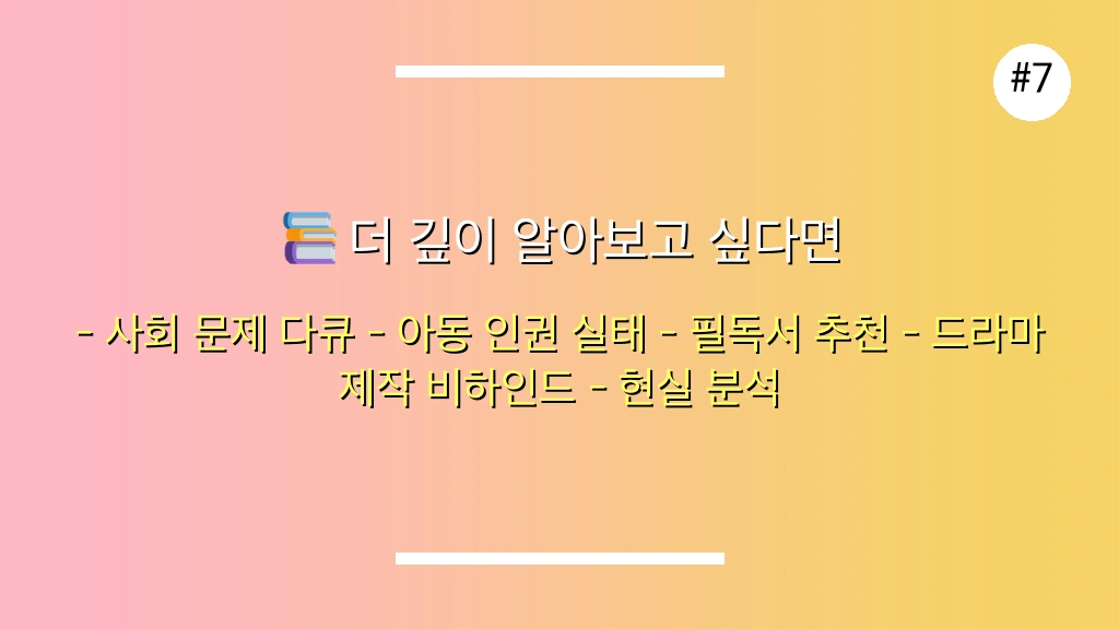 - 단기적으로: 드라마를 통해 아동 인권 및 사회적 약자에 대한 관심을 환기시킬 수 있습니다.