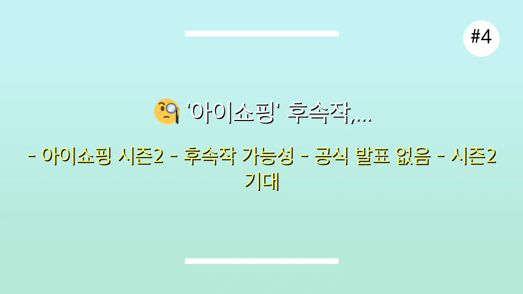 🧐 '아이쇼핑' 후속작, 시즌 2 가능성은?