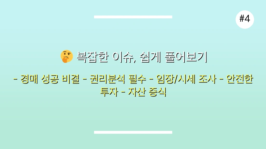 🗣️ 시민 목소리: "경매는 어렵고 복잡해 보여서 망설여져요. 초보자가 실수하지 않고 할 수 있는 방법이 있을까요?"