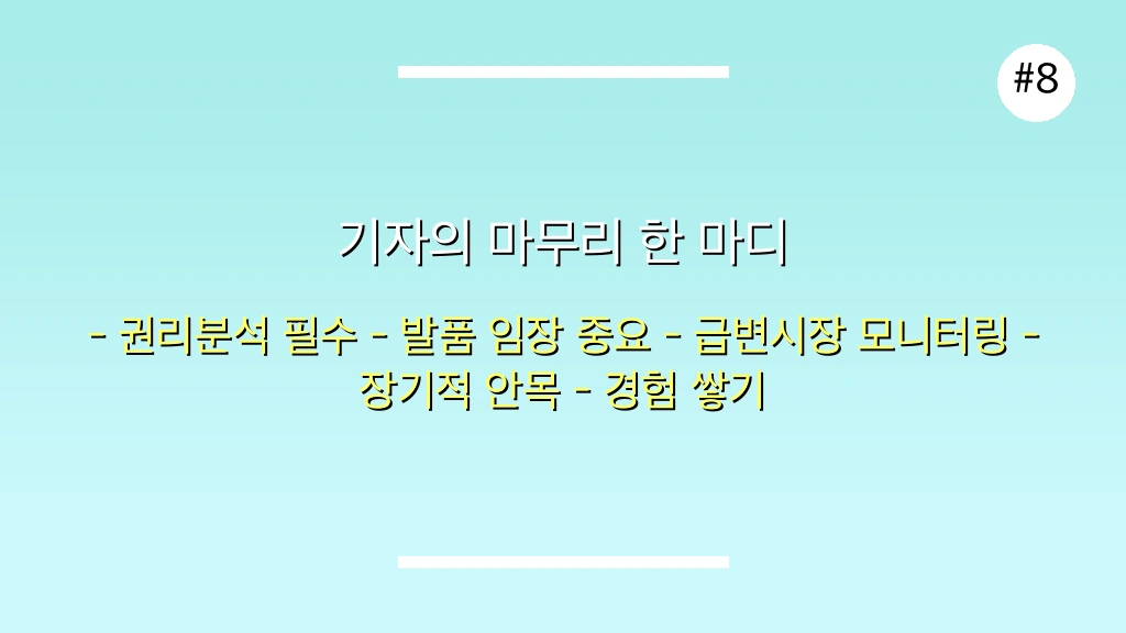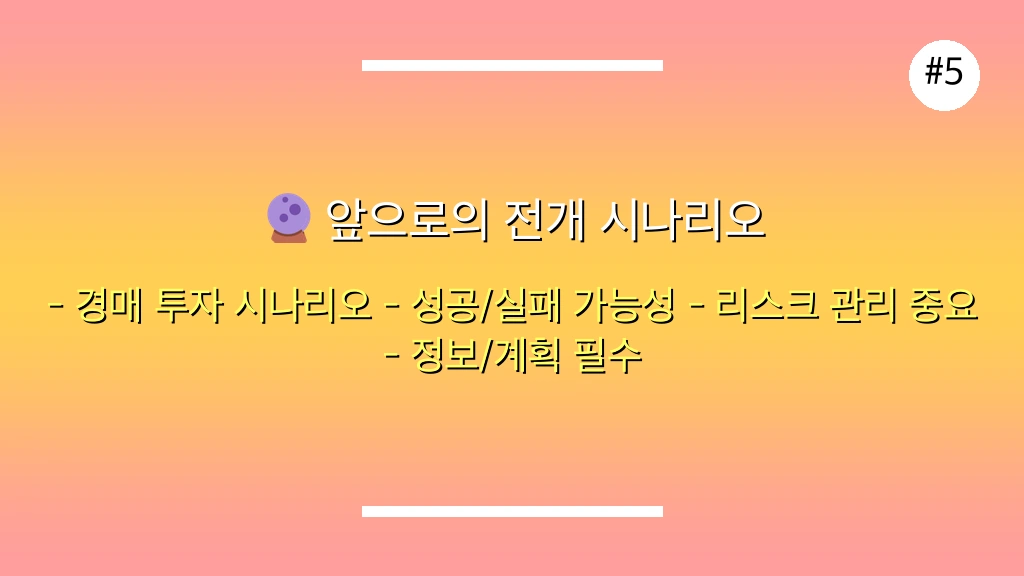 향후 주목할 점: 급변하는 부동산 시장 상황과 금리 변동 추이를 지속적으로 모니터링하며, 자신의 투자 성향에 맞는 물건을 선별하는 안목을 키워야 합니다.