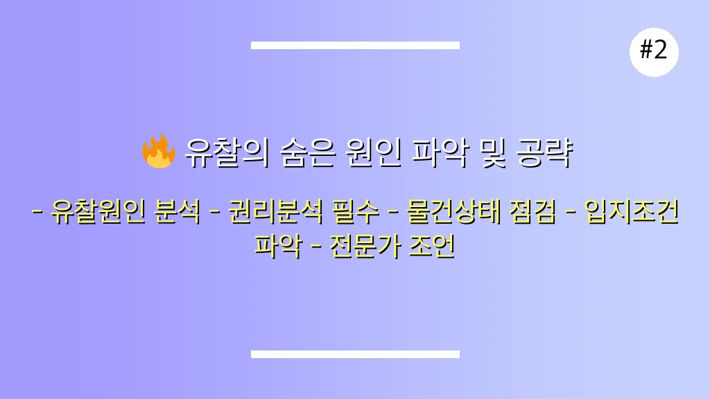 효과: 유찰 원인을 정확히 알면 리스크를 최소화하고 저렴하게 낙찰받을 가능성이 크게 높아집니다. (시간/비용 절약 효과)