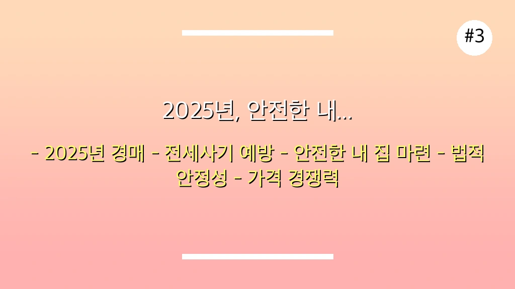 💡 전문가 인사이트: "2025년의 전세사기 심각성을 고려할 때, 경매는 단순한 저가 매수 기회를 넘어 안전한 자산 확보 전략으로 재조명받고 있습니다."