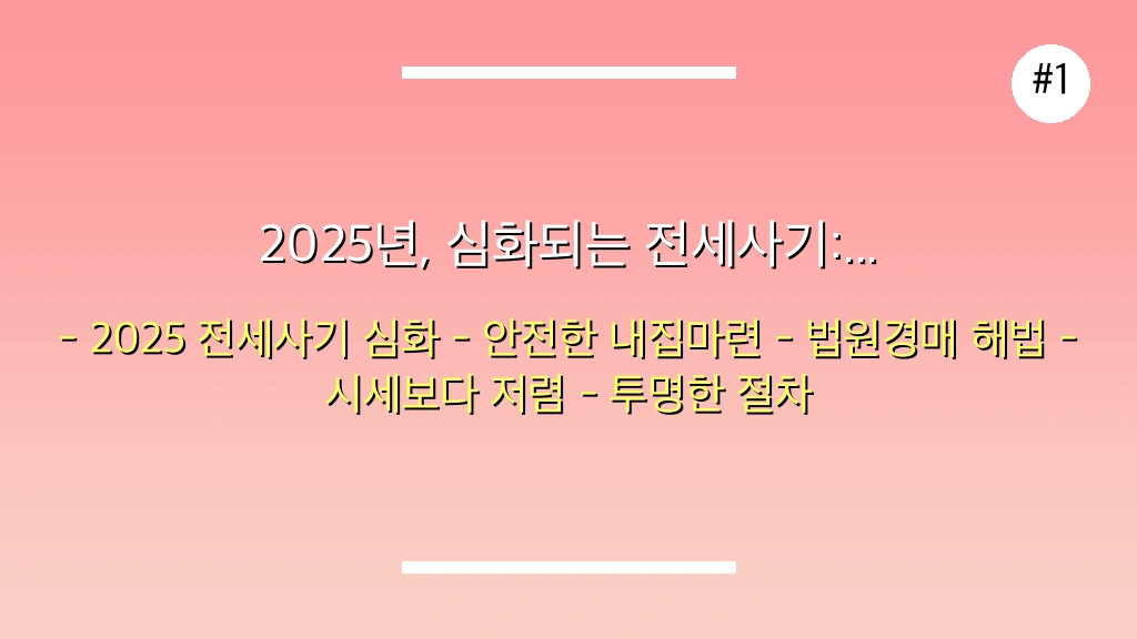 🎯 2025년, 심화되는 전세사기: 안전한 내 집 마련을 위한 현명한 해법, 법원 경매