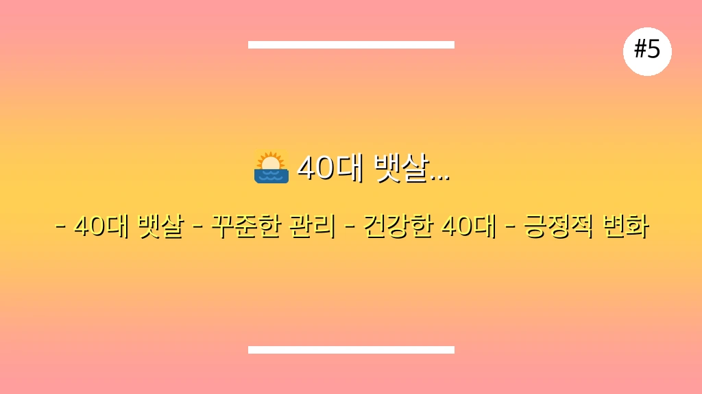 뱃살 감량은 단순히 체중계 숫자를 줄이는 것을 넘어, 건강한 생활 습관을 만드는 과정입니다. 체계적인 계획과 꾸준한 실천을 통해 40대에도 충분히 탄력 있는 몸매를 만들 수 있습니다.