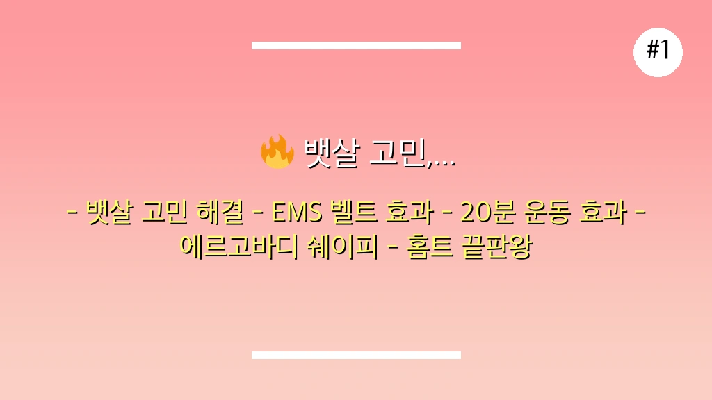 💡 에르고바디 쉐이피 EMS 벨트, 하루 20분 착용으로 6시간 운동 효과를 제공한다는 광고 문구가 눈길을 사로잡았습니다. 처음에는 반신반의했지만, 직접 착용해보니 꽤 괜찮은 경험이었습니다.
