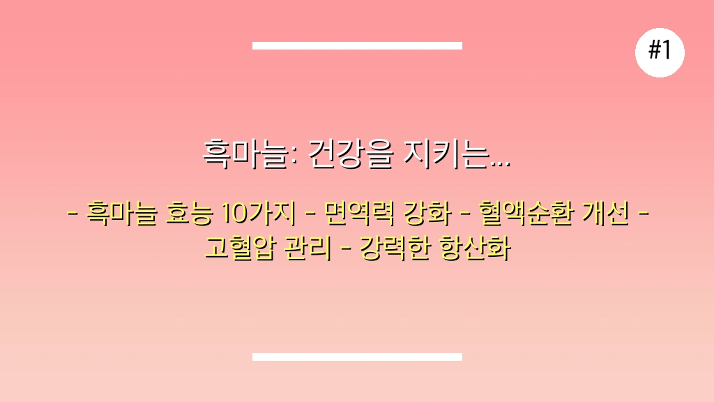 면역력 강화부터 혈액순환 개선, 고혈압 관리까지! 흑마늘의 놀라운 10가지 효능을 완벽하게 정리했습니다.