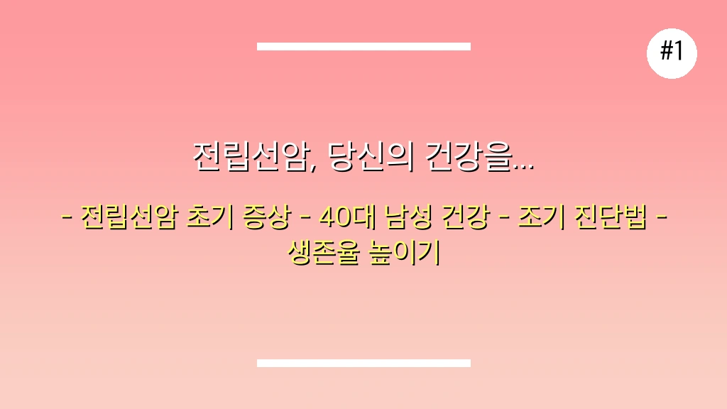 40대 이상 남성이라면 반드시 알아야 할 전립선암 초기 증상과 생존율을 높이는 조기 진단법을 완벽하게 알려드립니다.