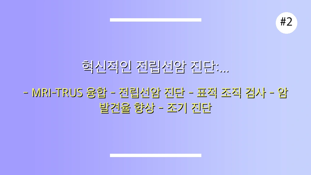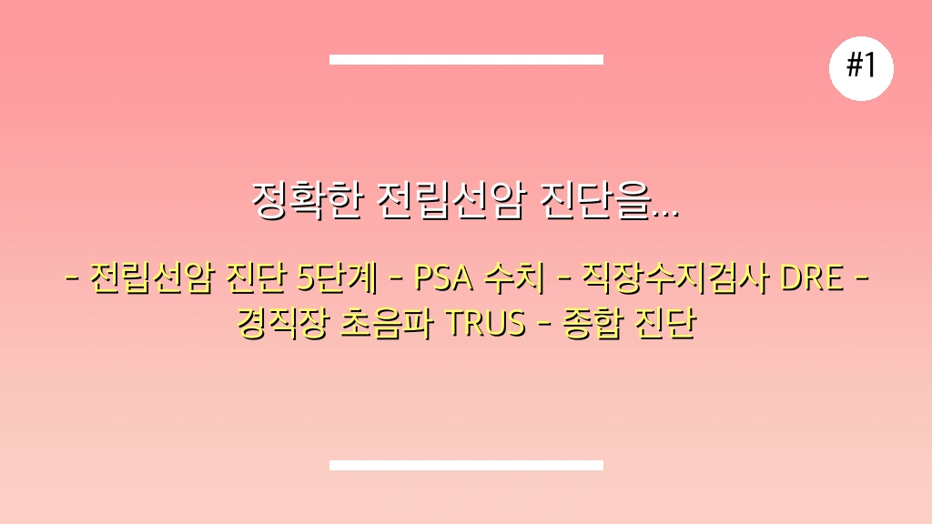 정확하고 신뢰할 수 있는 전립선암 진단을 위해서는 PSA 수치만으로 판단하는 것을 넘어, 직장수지검사, 경직장 초음파, 그리고 최신 MRI-TRUS 융합 표적 조직 검사와 같은 정밀 검사를 반드시 함께 시행해야 합니다. 이러한 통합적인 접근 방식이야말로 현재 가장 신뢰받는 표준 진단법이며, 여러분의 건강을 지키는 확실한 방법입니다.