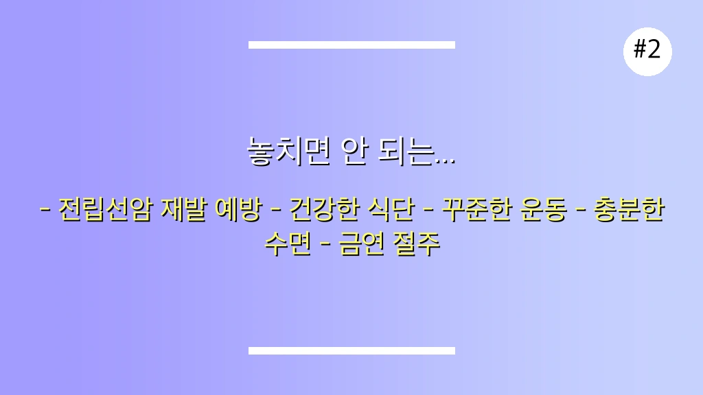 치료 후에도 안심할 수 없는 전립선암 재발. 하지만 정기적인 모니터링과 철저한 예방 전략으로 우리는 재발 위험을 낮추고, 삶의 질을 지킬 수 있습니다. 실제 후기와 전문가들의 조언을 통해 재발의 신호를 미리 파악하고, 똑똑하게 대비하는 7가지 방법을 완벽하게 알려드립니다.