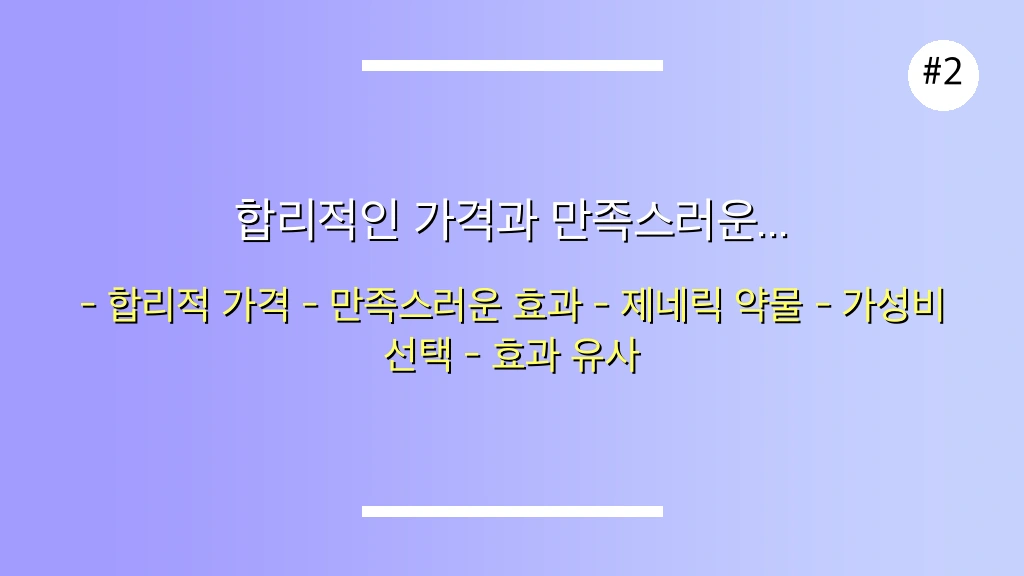 A: 반드시 그렇지는 않습니다. 가격보다는 본인의 증상과 신체 반응에 맞는 성분과 용량을 선택하는 것이 훨씬 중요합니다. 효과가 우수한 제네릭 의약품도 많으므로, 전문가와의 상담을 통해 합리적인 가격으로 만족스러운 효과를 얻을 수 있습니다.