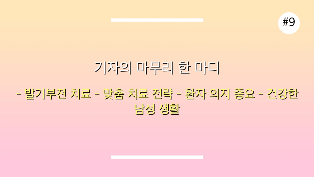 전문가 의견: 발기부전 치료는 환자의 근본적인 원인 진단이 우선이며, 수술과 비수술 치료는 각각의 장단점을 고려하여 신중하게 접근해야 합니다.