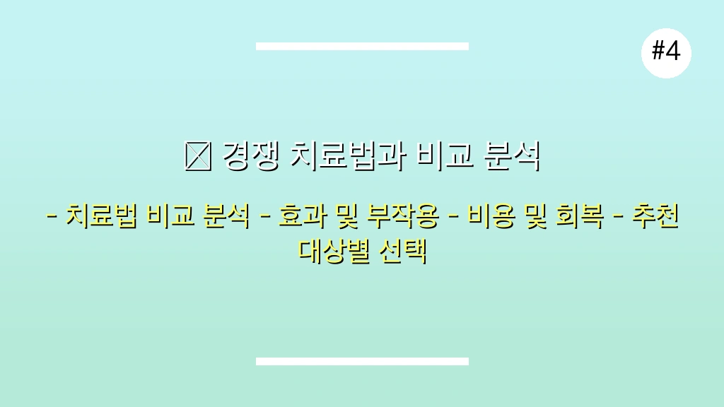 | ✨ 추천 대상 | 가장 일반적, 자연스러운 효과 원할 시 | 즉각적 강력한 효과 필요 시 | 다른 치료 실패 시, 영구적 해결 원할 시 |