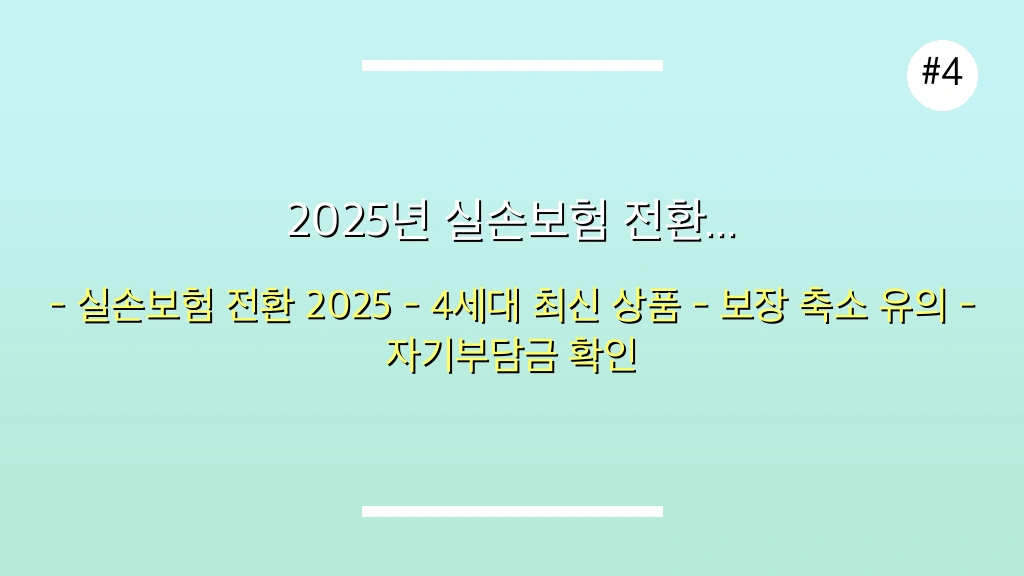 | 4세대 실손보험 2025년, 이것만 알면 손해 안 봐요! 완벽 계산 & 전환 가이드 (0) | 2025.09.10 |