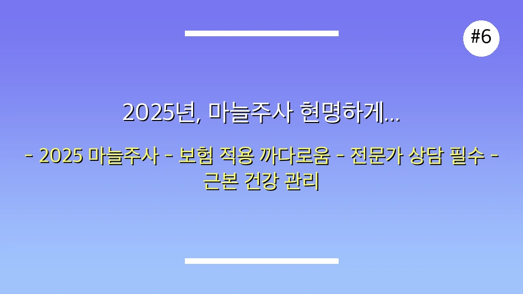마늘주사는 일시적인 피로 해소에 도움을 줄 수 있지만, 과학적으로 명확히 입증된 효능이나 장기적인 효과에 대해서는 아직 더 많은 연구가 필요하다는 점을 반드시 기억해야 합니다. 특히 2025년부터는 미용 및 단순 피로 회복을 위한 비급여 주사 치료에 대한 실비 보험 적용 기준이 더욱 까다로워졌으므로, 시술 전 반드시 보험사와 상세하게 상담하여 본인의 보험 약관을 정확히 확인하는 것이 가장 중요합니다.
