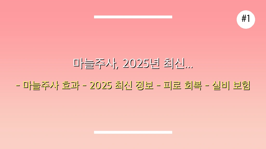 🎯 마늘주사, 2025년 최신 정보로 '피로 회복' 효과 제대로 알기