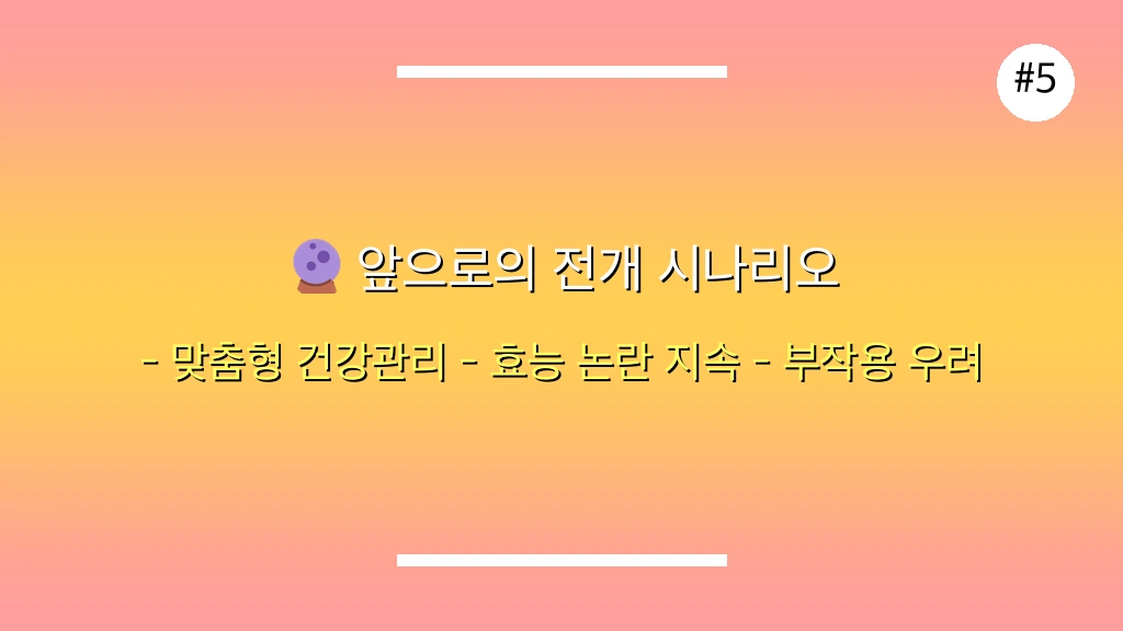 예상 전개: 효능에 대한 논란이 지속되며, 일부에서는 여전히 과대 광고와 오남용이 발생.