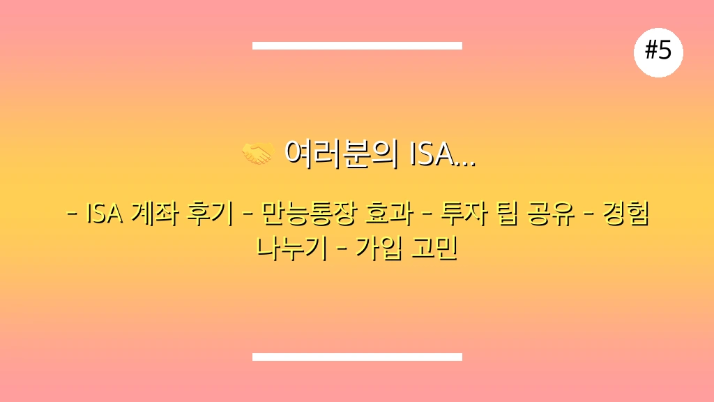 🤝 여러분의 ISA 계좌 경험을 공유해주세요!