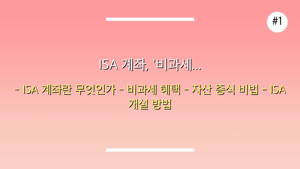 많은 분들이 'ISA 계좌' 또는 '비과세 만능통장'이라는 용어를 자주 접하지만, 정확히 무엇인지, 그리고 실제로 어떤 '효과'가 있는지 궁금해하시는 경우가 많습니다. 복잡하게만 느껴졌던 ISA 계좌를 꼼꼼히 파고든 결과, 왜 '만능통장'이라 불리는지, 그리고 여러분의 자산 증식에 어떻게 기여할 수 있는지 구체적으로 알아보겠습니다. ISA 계좌의 장점, 단점, 그리고 개설 방법까지 A to Z를 명확하게 정리하여 여러분의 현명한 재테크 결정을 돕겠습니다.