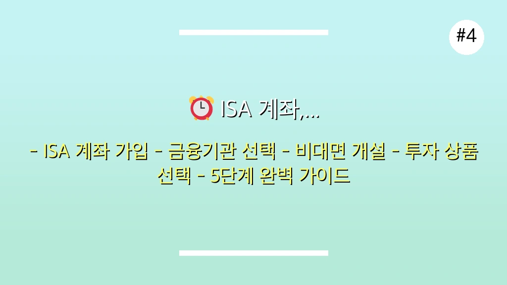 ⏰ ISA 계좌, 개설부터 운용까지 5단계 완벽 가이드