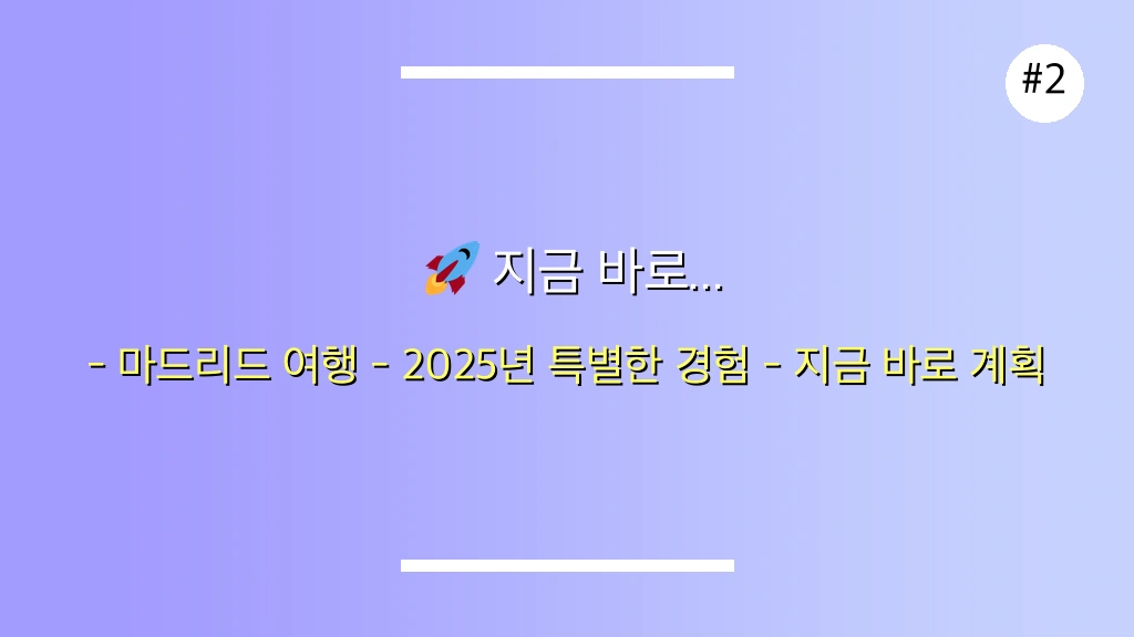 이 가이드와 함께라면 2025년, 당신의 마드리드 여행은 더욱 특별하고 기억에 남는 최고의 경험이 될 것입니다. 지금 바로 당신만의 마드리드 여정을 계획해보세요!