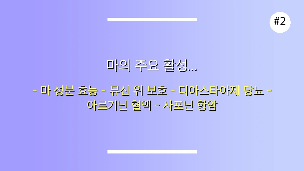 마의 건강 효능을 이끄는 주요 성분들을 상세하게 정리하면 다음과 같습니다.
