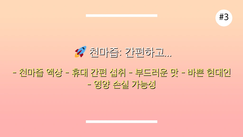 - 간편하고 빠른 섭취를 최우선으로 생각한다면? ➡️ 천마즙