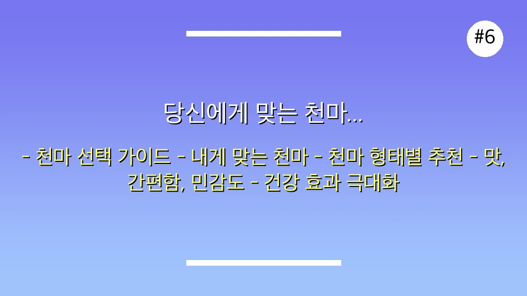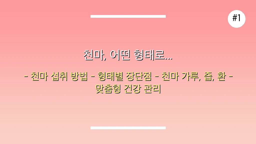자신의 건강 상태, 기호, 생활 습관을 고려하여 가장 적합한 천마 형태를 선택하는 것이 중요합니다. 아래 가이드라인을 참고하여 현명한 선택을 하세요.