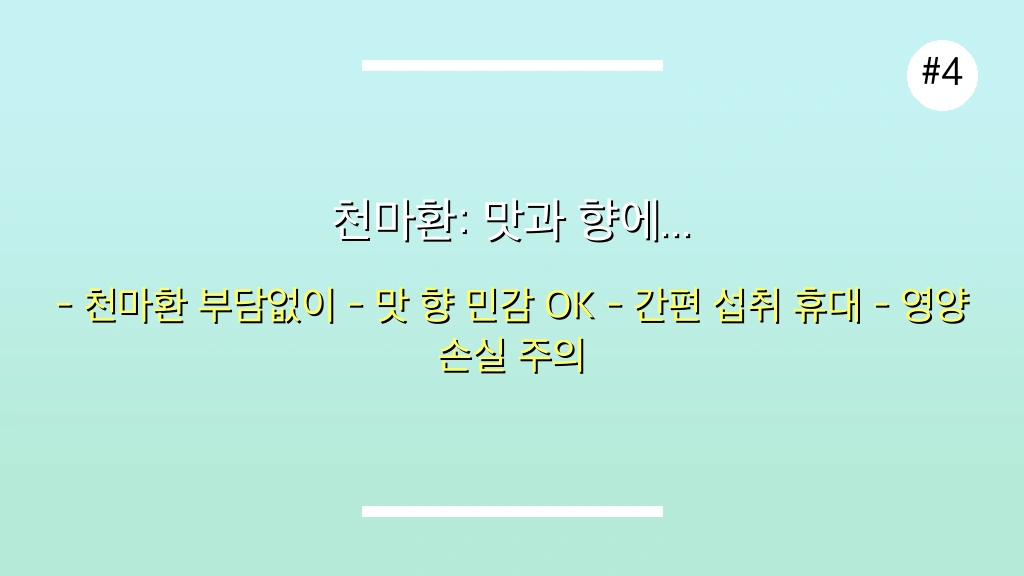 🎯 천마환: 맛과 향에 민감한 분들을 위한 최적의 선택