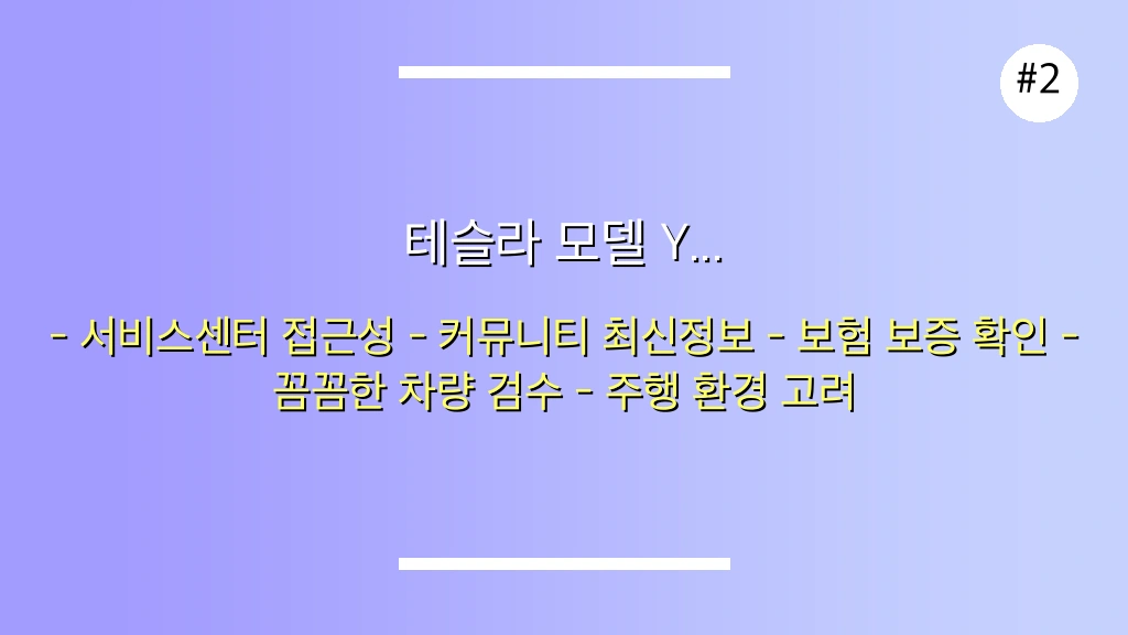 - 실제 주행 환경 고려: 본인의 주행 패턴, 자주 이용하는 도로 환경 등을 고려하여 모델 Y의 특성이 본인에게 적합한지 신중하게 판단해야 합니다.