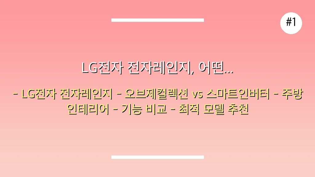 주방의 품격을 높이는 LG 오브제컬렉션과 실용적인 LG 스마트 인버터 전자레인지 사이에서 고민하고 계신가요? 각 모델의 특징과 장단점을 꼼꼼히 비교 분석하여 당신에게 딱 맞는 최고의 선택을 도와드리겠습니다. 놓치면 안 되는 핵심 정보들을 지금 바로 확인해보세요!