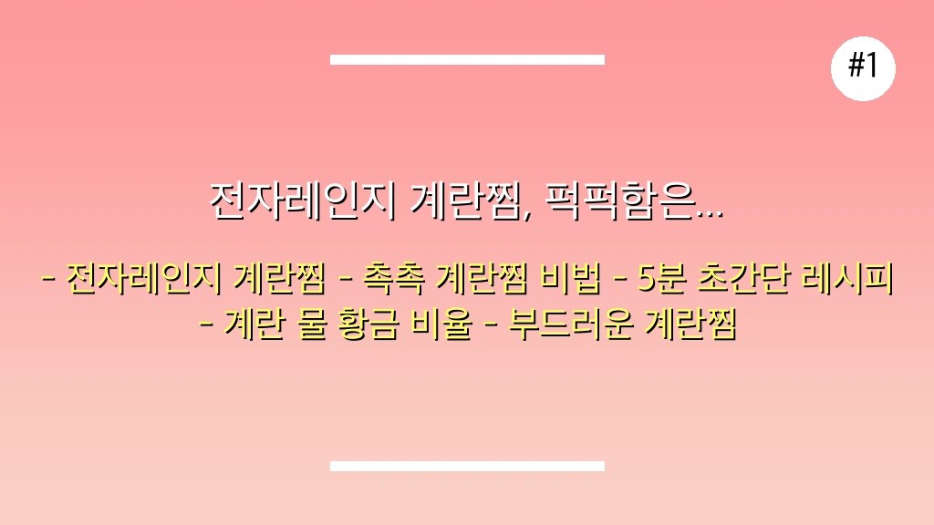 이 완벽 가이드라인을 따른다면, 여러분도 집에서 언제나 촉촉하고 맛있는 전자레인지 계란찜을 실패 없이 즐기실 수 있을 것입니다. 지금 바로 도전해보세요! 😋