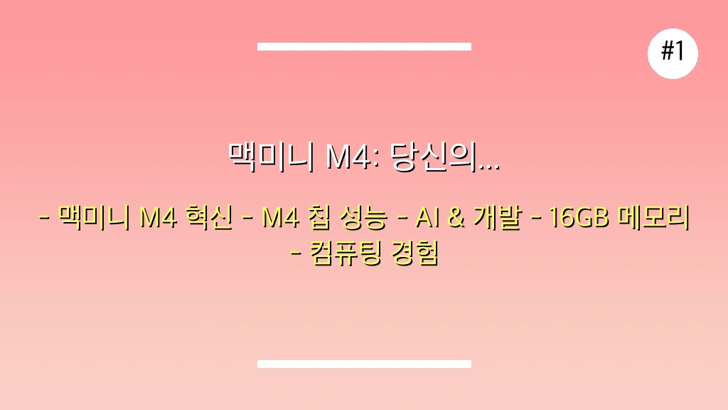 최신 M4 칩을 탑재한 맥미니 M4는 단순한 업그레이드를 넘어, 당신의 컴퓨팅 경험을 한 단계 끌어올릴 강력한 성능과 효율성을 선사합니다. 기본 16GB 메모리부터 시작하는 넉넉한 사양은 AI 작업, 프로그래밍, 영상 편집 등 고사양을 요구하는 작업에서도 막힘없는 만족감을 제공합니다. 이 글에서는 맥미니 M4를 선택해야 하는 구체적인 이유들을 전문가적인 시각과 실제 사용자 경험을 바탕으로 자세히 알려드립니다. 놓치면 안 되는 정보를 지금 바로 확인하세요!