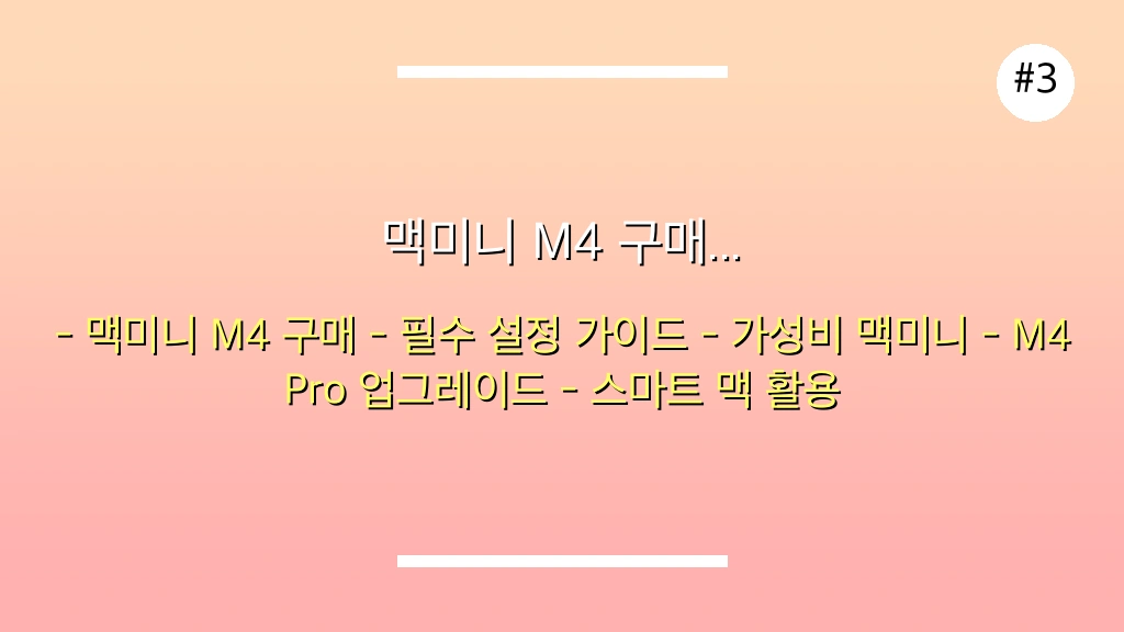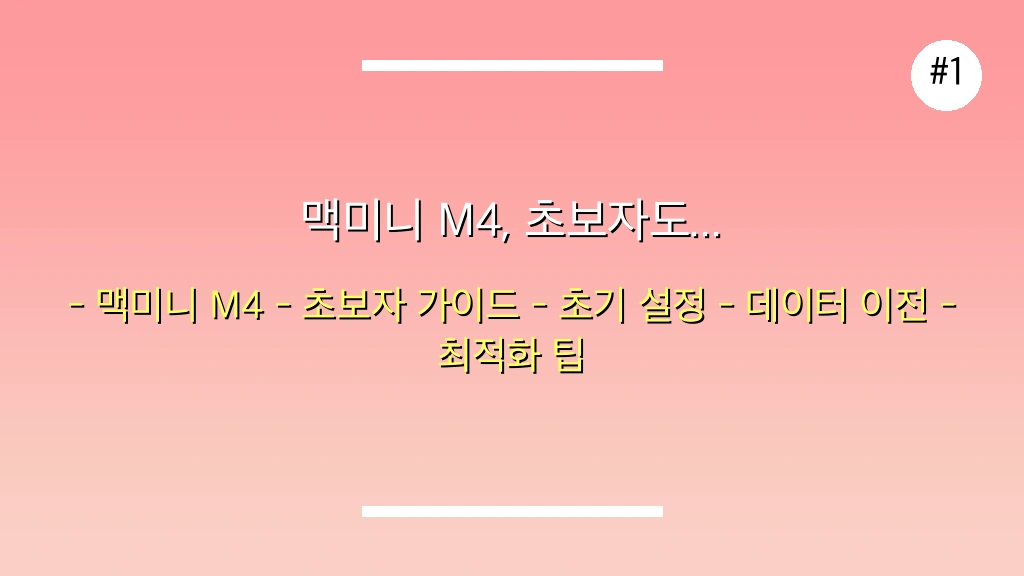 초보자도 쉽게 따라 할 수 있는 상세한 설정 가이드를 통해 맥미니 M4의 모든 기능을 완벽하게 활용할 수 있도록 안내합니다. 이 가이드를 통해 여러분의 맥미니 M4를 더욱 스마트하고 효율적으로 사용하시길 바랍니다!