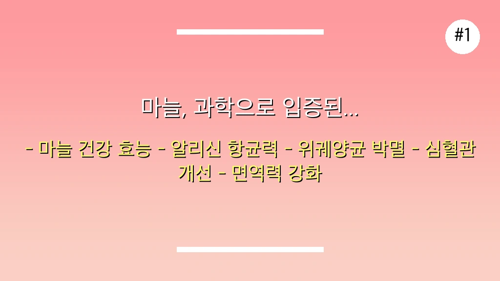 💡 마늘은 항균, 항암, 심혈관 건강, 면역력 강화 등 다방면에 걸쳐 탁월한 건강 증진 효과를 제공합니다. 2025년 최신 연구들은 이러한 효능들을 더욱 명확하게 뒷받침하고 있습니다.