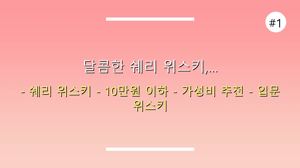 쉐리 위스키 특유의 달콤하고 복합적인 풍미는 많은 위스키 애호가들을 사로잡습니다. 하지만 높은 가격 때문에 선뜻 경험하기 망설여지는 분들도 많으실 텐데요. 이제 10만원대 이하에서도 훌륭한 쉐리 위스키를 만날 수 있습니다. 입문자도 부담 없이 쉐리 위스키의 매력을 제대로 느낄 수 있는 가성비 추천 제품들을 엄선하여 소개합니다. 쉐리 위스키의 세계로 지금 바로 떠나보세요!