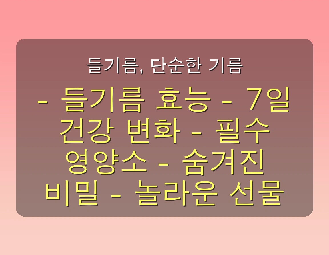 안녕하세요! 오늘은 우리가 흔히 접하는 들기름 속에 감춰진 놀라운 효능과 7일 만에 경험할 수 있는 변화를 자세히 알려드릴게요. 단순히 요리 재료를 넘어, 우리 몸에 놀라운 선물을 선사하는 들기름의 진짜 비밀을 지금부터 공개합니다.