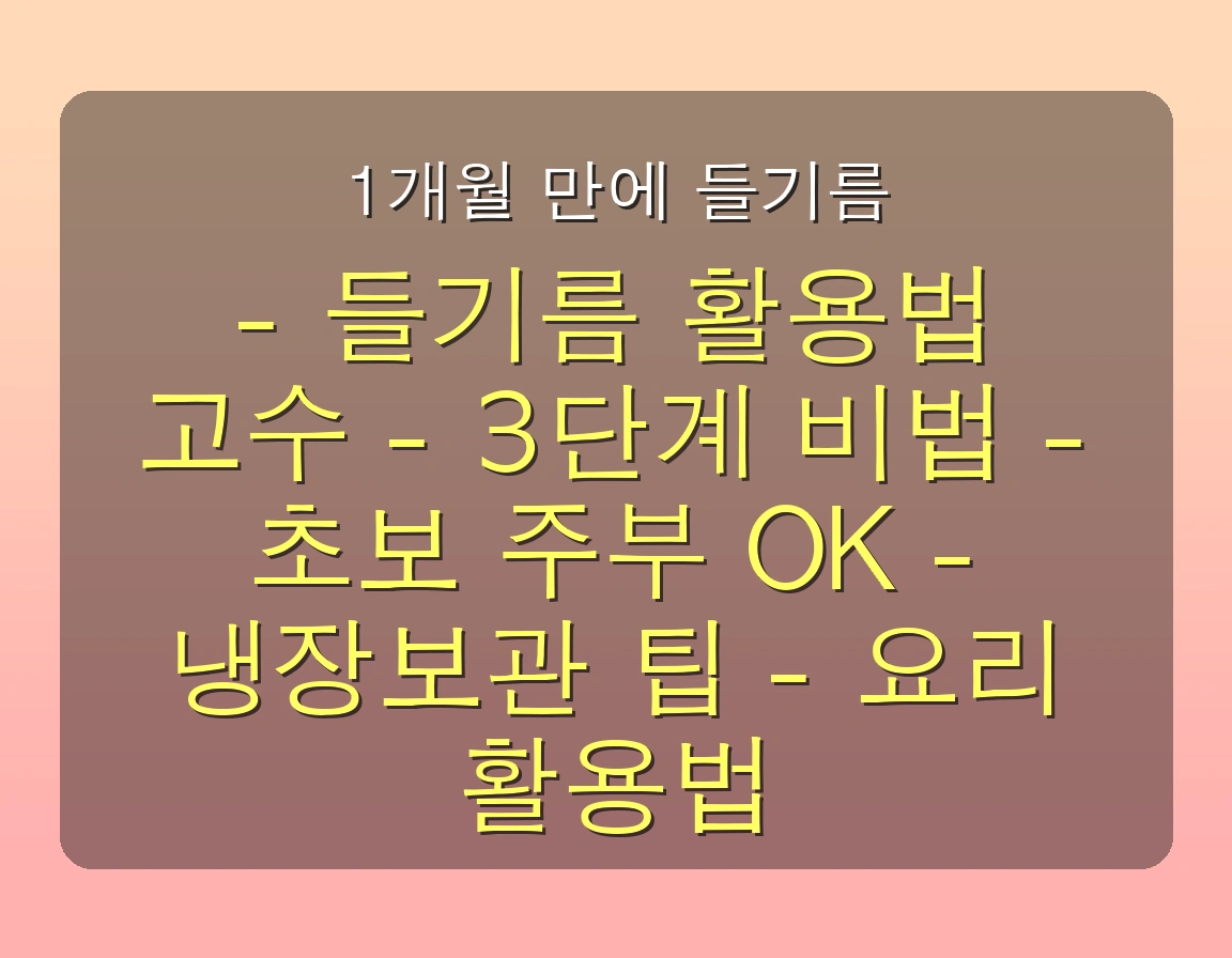 1개월 만에 들기름 활용법 고수가 되는 3단계 비법: 초보 주부도 OK!