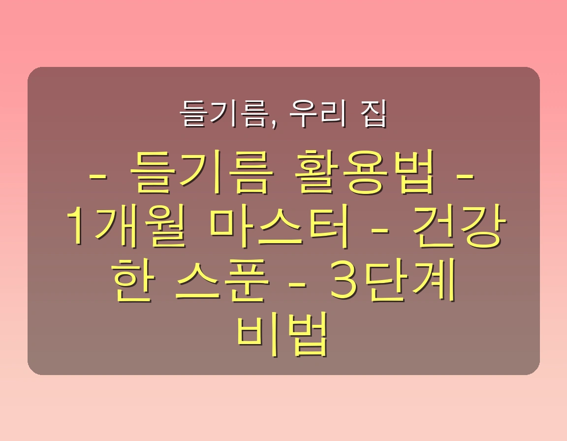 까다로운 초보 주부님들도 1개월이면 들기름 활용법을 완벽하게 마스터할 수 있습니다. 오늘은 들기름의 놀라운 효능부터, 누구나 쉽게 따라 할 수 있는 3단계 비법까지 상세하게 알려드릴게요. 놓치면 후회할 필수 정보입니다.