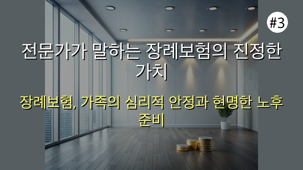 "고령화 사회에서 장례보험은 선택이 아닌 필수로 자리매김하고 있습니다. 개인의 상황에 맞는 현명한 장례 계획은 남은 가족들에게 최고의 선물이 될 것입니다." - 익명의 금융 전문가